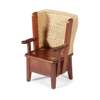 with woven straw back and open arms above a solid seat on square tapering supports linked by stretchers