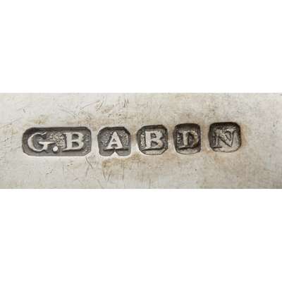 to include, George Booth & Sons, marked GB., ABD, AB, another marked GB, AB, GB, AB; another marked GB, A, B, D, N; another marked GB, ABD, AB; together with George Jamieson, London, 1845 and another, George Jamieson, Edinburgh 1841, all of Fiddle pattern (6)