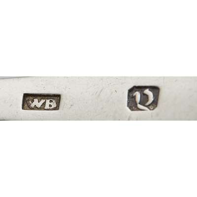 marked JH, A,B,D,N, of Fiddle pattern; marked WB, Gothic Q, of Old English pattern engraved initials to terminal; marked PL, thistle, of Old English pattern, engraved initials to terminal (3)