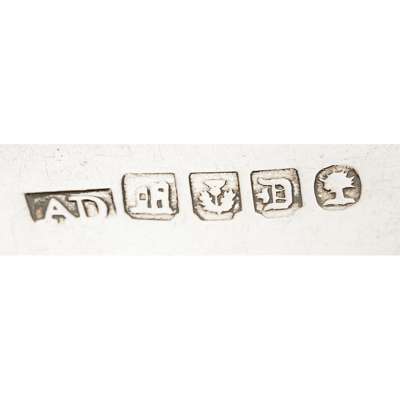 marked AD, ruined castle, thistle, gothic D, oak tree, of Fiddle pattern