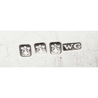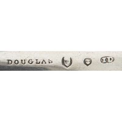 marked, pot of lilies thrice marked WC, of Fiddle pattern; DOUGLAS, crowned heart, heart, ID of Celtic Point pattern, italic initials engraved to terminal; marked IJ BUSH, D, acorn, of Old English pattern italic J engraved to terminal (3)