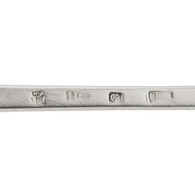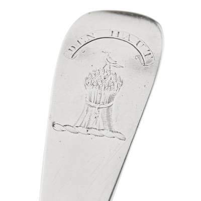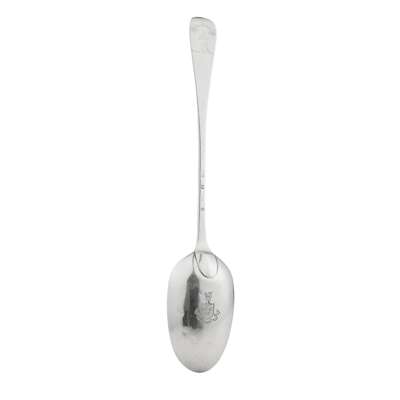 Originally made for Sir John Whiteford of Blairquhan, this spoon was likely inherited by his son and heir Sir John Whiteford of Ballochmyle. The younger Sir John was perhaps most famous as one of Robert Burns' earliest patrons.