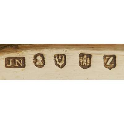 or rounded rectangular form with engine decoration and crest to cover; together with an unmarked oval snuff box with engraved initials to cover