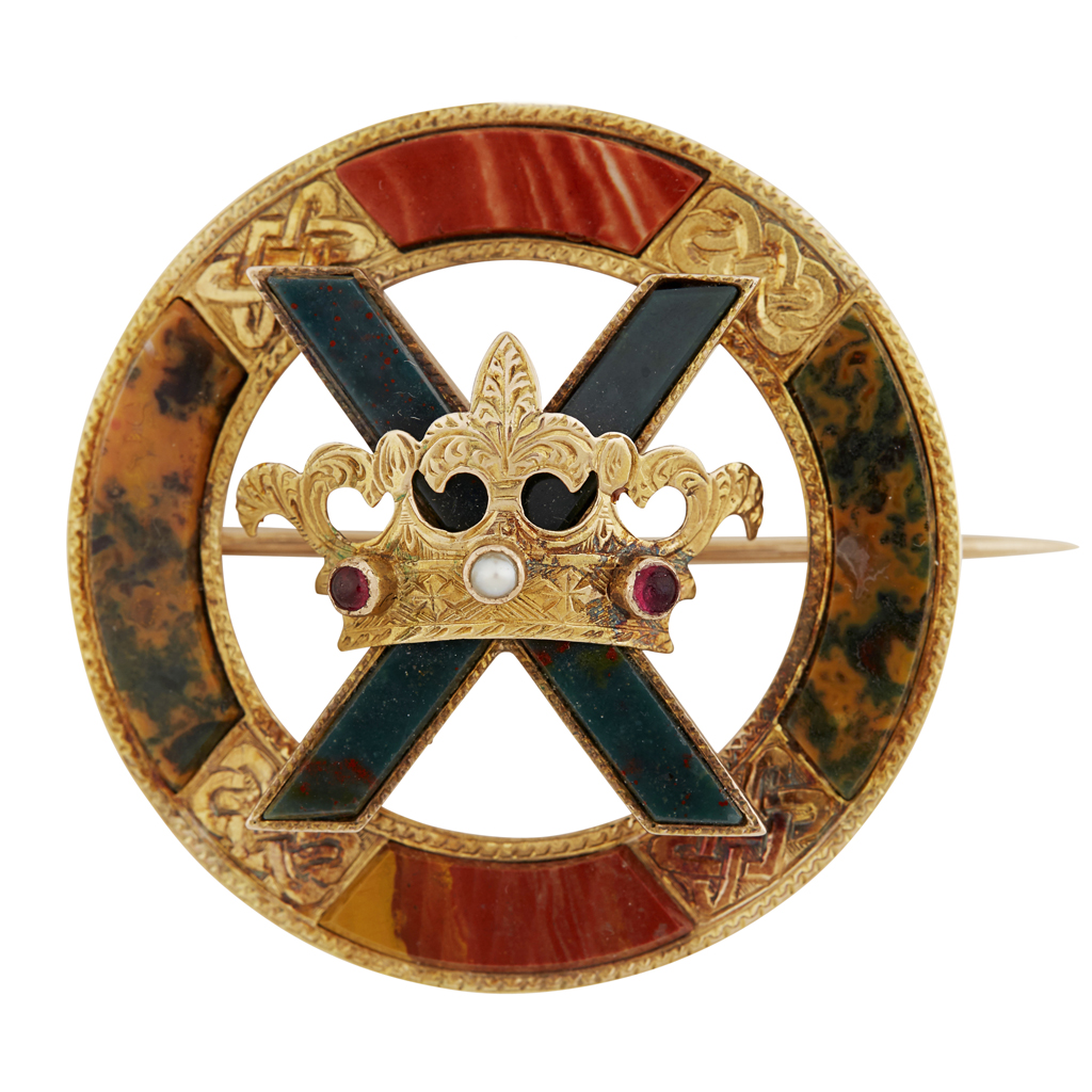 A ROYAL PRESENTATION SCOTTISH HARDSTONE BROOCH
