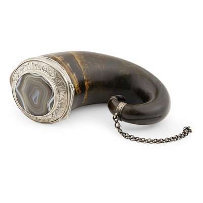 A LATE EIGHTEENTH CENTURY LARGE CURLY HORN SNUFF MULL