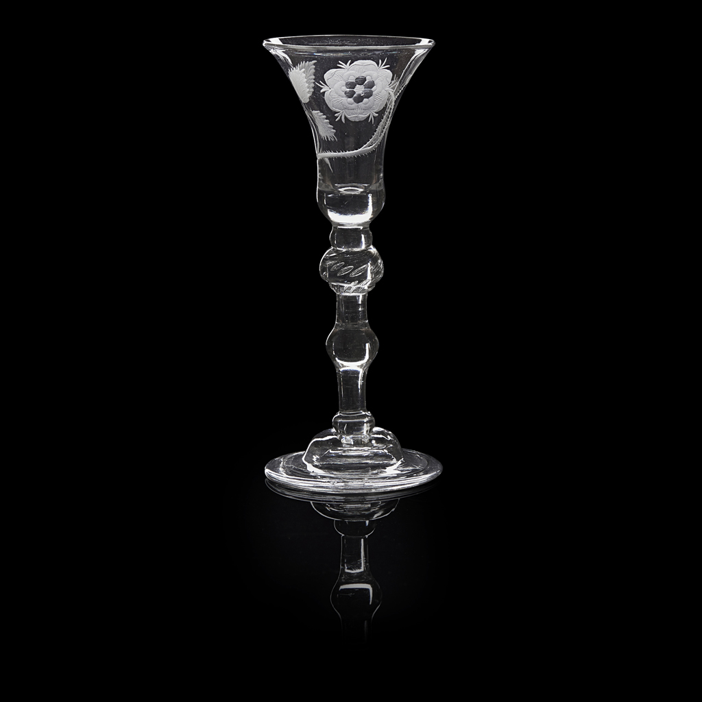 Other examples of this glass, possibly from the same original set, can be found within the Garton Collection which now forms part of The Museum of London collection. The Ron and Mary Thomas Collection of English Glass, Bonhams London 4th June 2008 lot 189 and The Drambuie Collection (see The Jacobites and Their Drinking Glasses, colour plate 40).