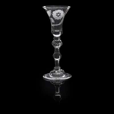 A JACOBITE LIGHT BALUSTER WINE GLASS