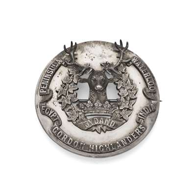 A LATE VICTORIAN GORDON HIGHLANDER PLAID BROOCH