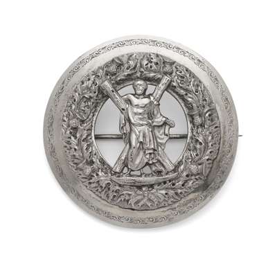 A BLACK WATCH WHITE METAL PLAID BROOCH