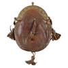 the arched cantle with pierced saltines and copper studs, hinged opening to leather back, the brown leather bag with four tassels in the earlier 18th century style