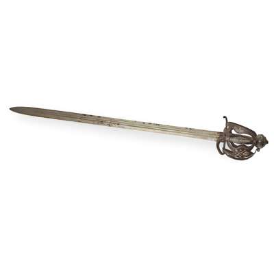 AN IMPORTANT EARLY SEVENTEENTH CENTURY SILVER MOUNTED SCOTTISH BASKET HILTED SWORD