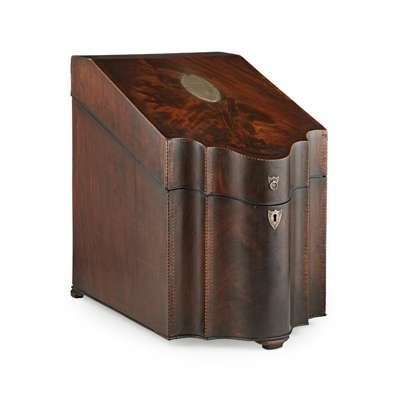 A FINE GEORGE III SILVER-MOUNTED MAHOGANY KNIFE BOX