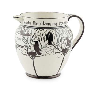 decorated with crows amongst branches, bearing inscription AS THE MANY WINTERED CROW, THAT LEADS THE CLANGING ROOKERY HOME/ EARLSHALL FAIRE/ A. D. 1914, painted and impressed mark WEMYSS