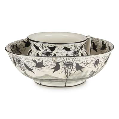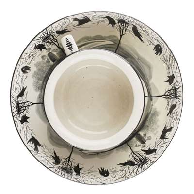decorated with windmills, rooks and trees in a landscape, each with painted mark EARLSHALL, restorations to basin (2)