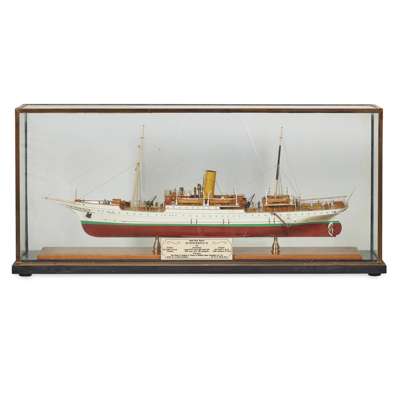Built by A. J. Berry Robinson for Mr W. Adams, the ship supplied to The North of Scotland & Orkney & Shetland Steam Navigation Company Ltd, builders Neil Russell and Co. Aberdeen, within a brass framed glazed display case