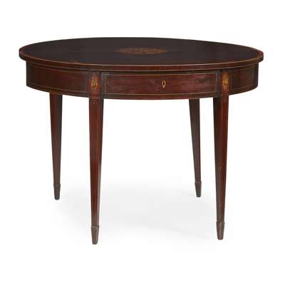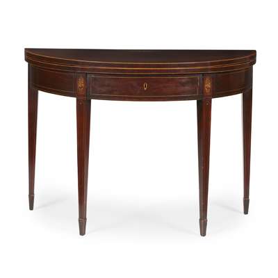 A SCOTTISH GEORGE III MAHOGANY INLAID DEMI-LUNE TEA TABLE