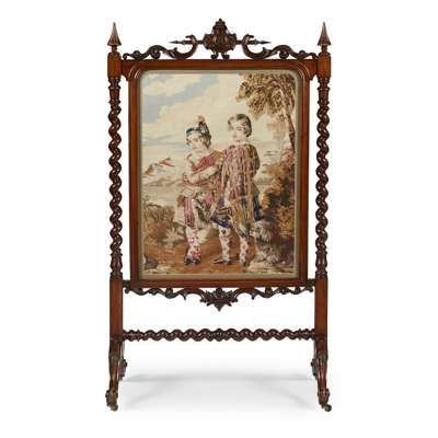 A SCOTTISH VICTORIAN MAHOGANY AND NEEDLEWORK FIRESCREEN