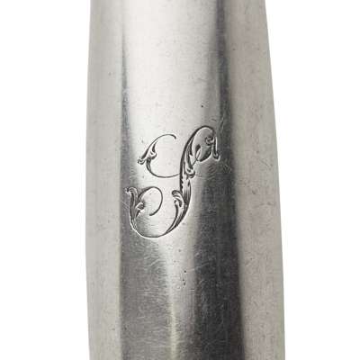 marked IG, two indistinct marks, of conventional double scoop form with engraved initials to reverse of bowl