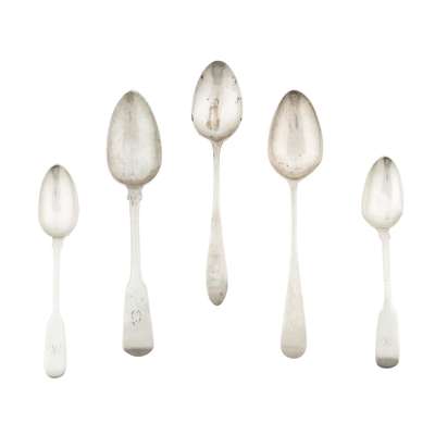 marked WM, rose head thrice, of Old English pattern; together with a dessert spoon J Erskine of Aberdeen; another J Summer of Greenock and two teaspoons by J Berry of Aberdeen (2)