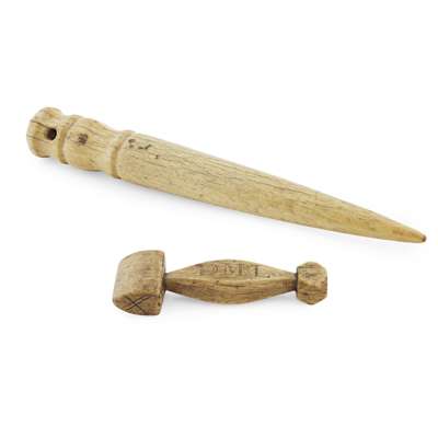 of conventional form, the handle with incised initials D McL, facetted knop, together with a large 18th/early 19th century large bodkin for nets, shaped terminal (2)