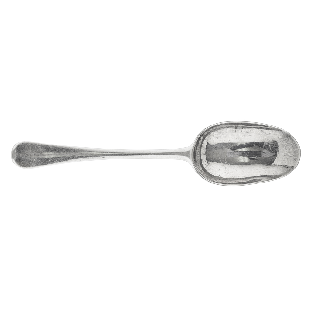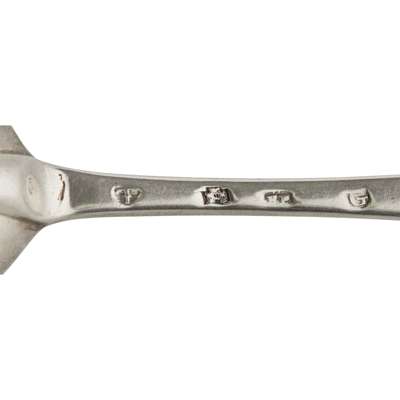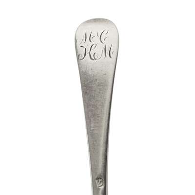 of Hanoverian pattern with rat tail to bowl and script initials MC / KM to reverse of terminal