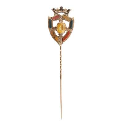A VICTORIAN AGATE AND CITRINE SET TIE PIN