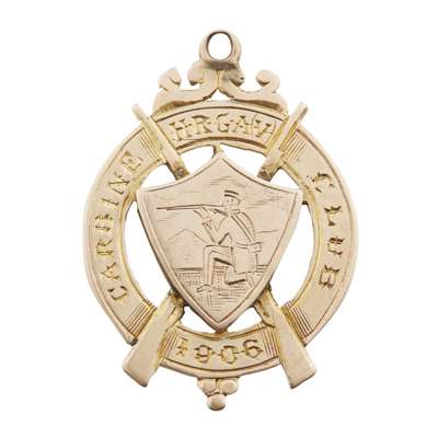 formed as luckenbooth; together with an enamel and silver set pansy brooch and a medallion awarded to the cabine club