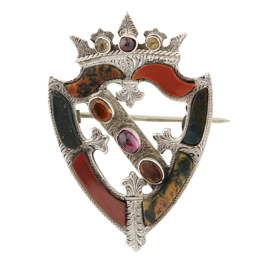 AN AGATE-SET VICTORIAN LUCKENBOOTH BROOCH