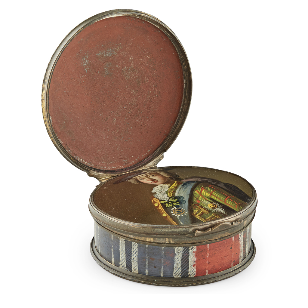 For a similar example but with a pasted engraved print on the interior of lid see Lyon & Turnbull 'Scottish Silver & Applied Art' 17th August 2016, lot 496 (sold for £10,000 hammer).