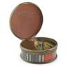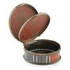 the circular box with enamel tartan decoration, the hinged cover opens to reveal a plain interior, the hidden double lid opens to reveal a finely enamelled portrait of Prince Charles Edward Stuart in tartan jacket with orders of The Garter and Thistle decorations, white cockade and blue bonnet