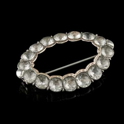 Exhibited: Highland and Jacobite Exhibition Inverness 4th August - 20th September 1903, where described as 'Brooch of old French paste, made from a shoe buckle worn by the Prince. Lent Mrs Robertson, Kingsburgh Bungalow, St Pierre du Bois, Guernsey'