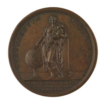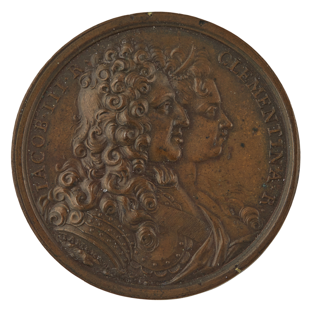 Obverse with conjoined busts of King James and Clementina, the reverse with Providentia holding a child with legend below