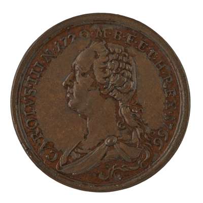obverse bust of Charles III, reverse with bust of Louise of Stolberg