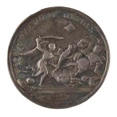 obverse with profits to King George I, signed under bust, reverse with scene of the battle with legend below