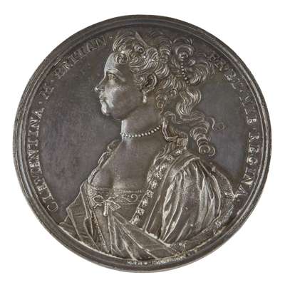 Obverse; bust of Princess Clementina with legend CLEMENTINA. M. BRITIAN. FR. ET. HIB. REGINA.