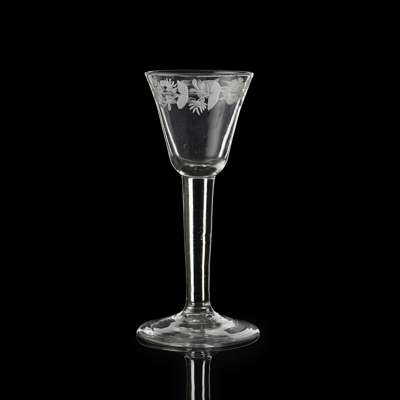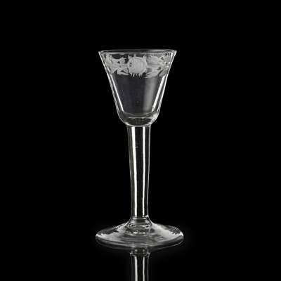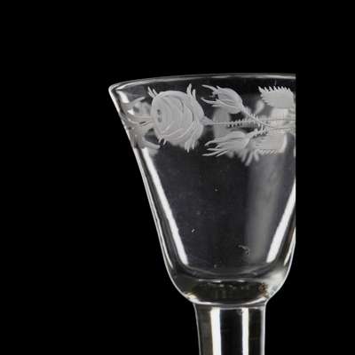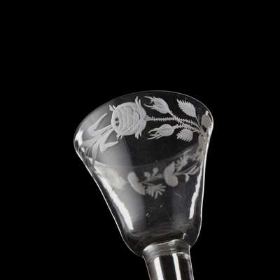 A JACOBITE ENGRAVED WINE GLASS