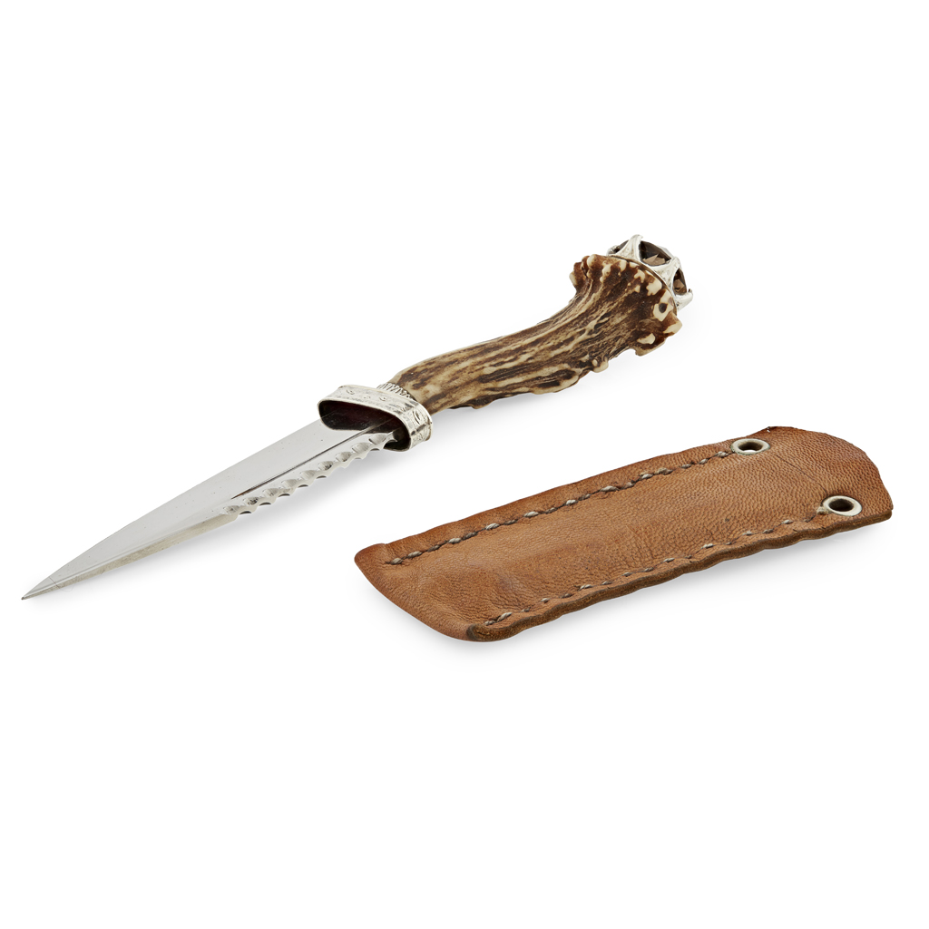A VICTORIAN ANTLER HANDLED SGIAN DUBH