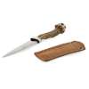 the Roe deer antler handle claw set with fancy cut citrine, engraved mount above tapered blade, with later leather scabbard