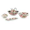 comprising a SMALL EWER AND BASIN, ewer 17cm high, basin, 28.5cm diameter; a SPONGE DISH AND LINER, 19cm diameter; a SOAP DISH, LINER AND COVER, 14cm diameter; and a PIN TRAY, 25cm long, variously marked, minor damages (5)