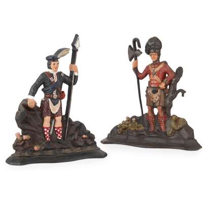 TWO PAINTED CAST IRON 'HIGHLANDER' DOORSTOPS