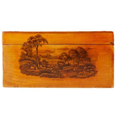 SYCAMORE MAUCHLINE WARE WORKBOX, BY CHARLES STIVEN, LAURENCEKIRK