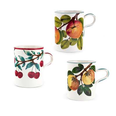 to include a LARGE 'APPLES' MUG, glazed earthenware, impressed maker’s mark WEMYSS, 14cm high; a LARGE 'ORANGES' MUG, glazed earthenware, impressed maker's mark WEMYSS WARE/ R.H.& S., 14cm high; a LARGE 'CHERRIES' MUG, glazed earthenware, faintly impressed maker's mark WEMYSS, 14cm high (3)