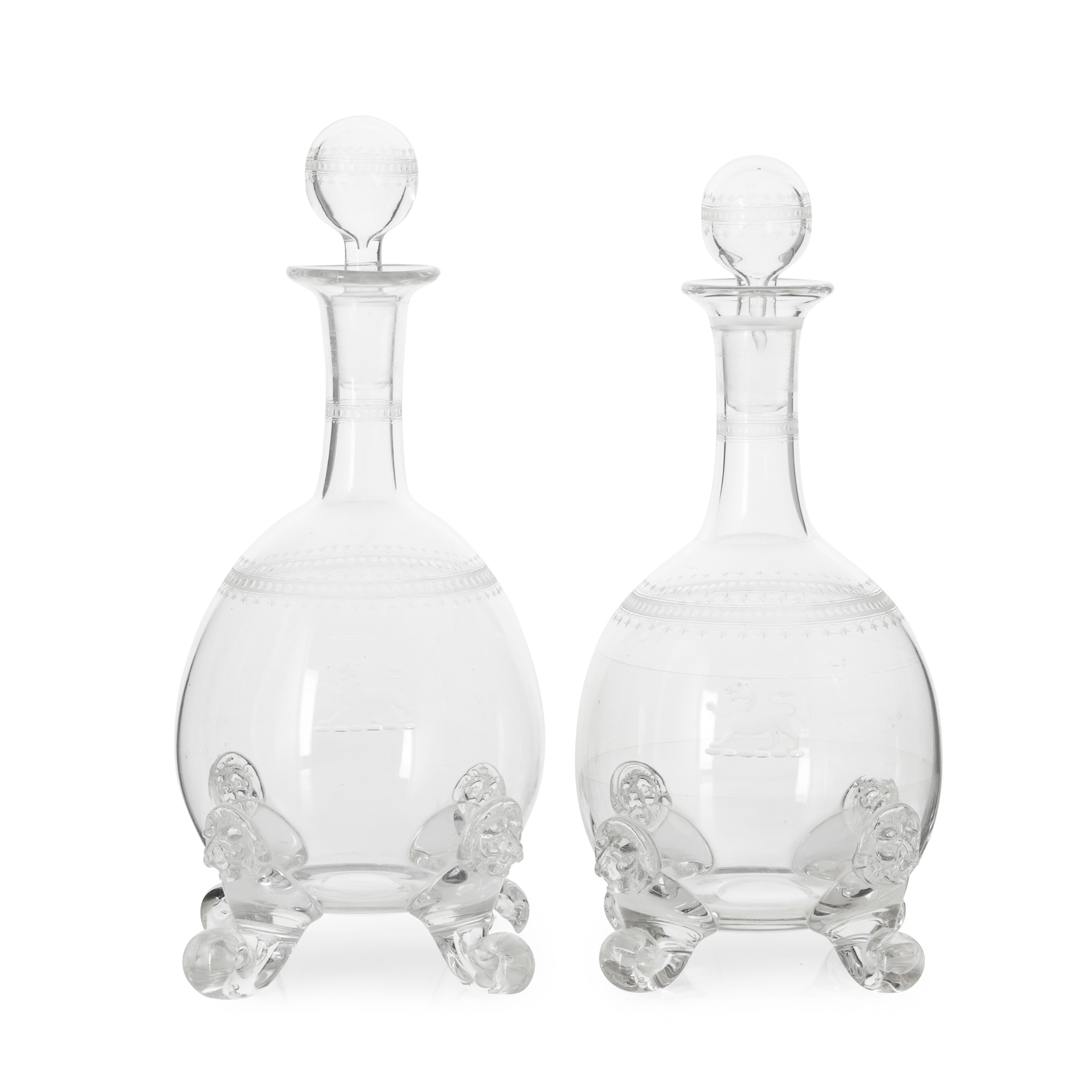 PAIR OF ENGRAVED GLASS DECANTERS AND STOPPERS, HOLYROOD GLASSWORKS, EDINBURGH
