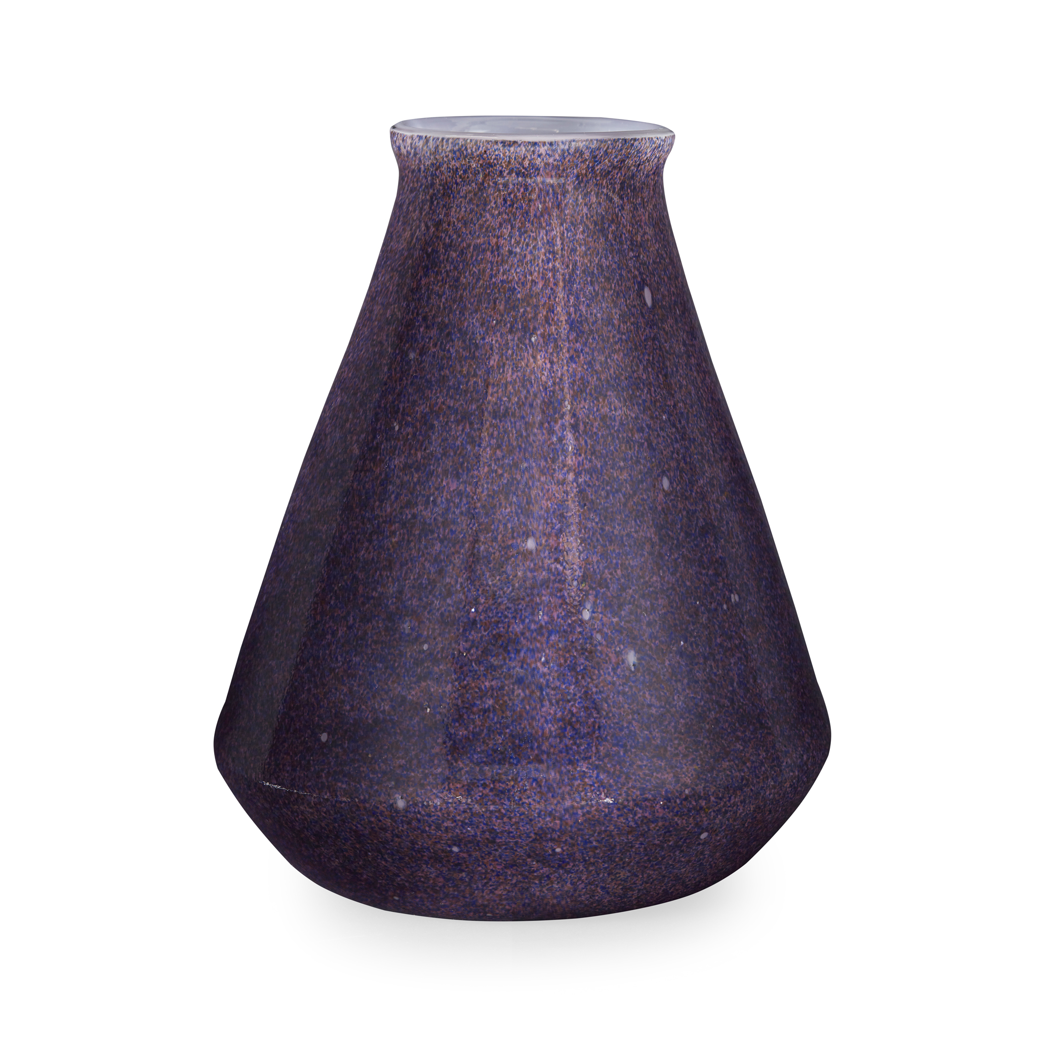 Shape D, Size V, of tapering form with short flared neck, with mottled heather, blue and brown body