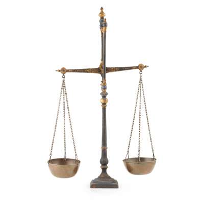 PAIR OF SCOTTISH CAST IRON TOLEWARE WEIGHING SCALES, JOHN WHITE & SON, AUCHTERMUCHTY