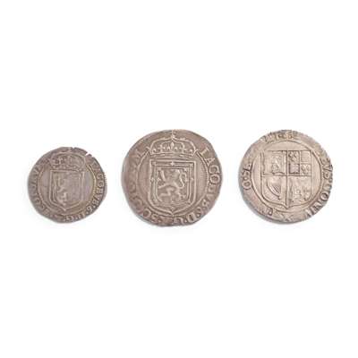 S.5506, VF or better; A James VI 1602 Thistle Merk and 1602 Half Thistle Merk (3)