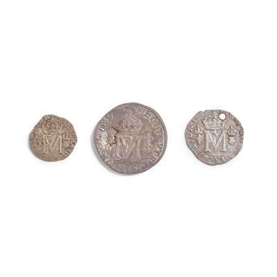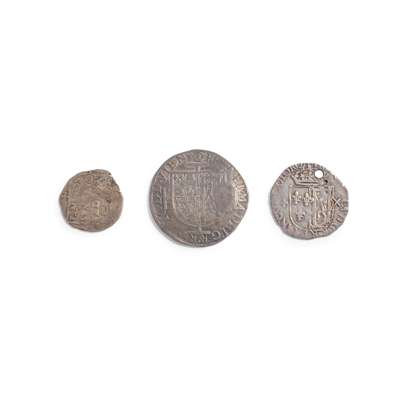 S.5416, with James VI 1578 revaluation countermark coin F countermark better; together with 1599 (?) Half Testoon S.5419 pierced and uneven edge with loss of some detail and a Twelvepenny Groat S.5448, F (3)