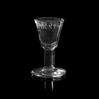 A CONTINENTAL 'FRIENDLY HUNT' FIRING GLASS OF JACOBITE INTEREST