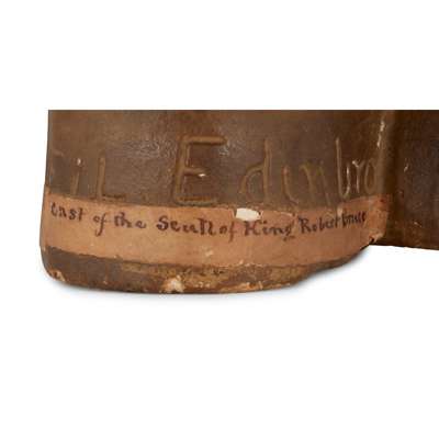 The sculptor William Scoular (1796-1854), under the supervision of the Professor of Surgery at University College (1834-1847), Dr. Sharpey, examined the skull of Robert the Bruce and created various plaster of Paris copies. A well-regarded figure in his field, other important commissions include a sculpture of the Princess Elizabeth of Clarence (1820-21) in the Royal Collection accession number RCIN 53354, and James Watt (1736- 1819) held in the Glasgow Life Collections, accession number S.149.