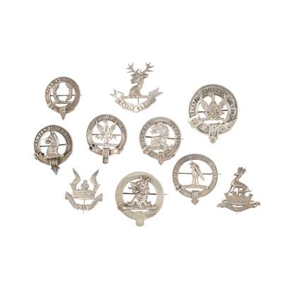 mostly unmarked, seven formed as a garter, six with embossed mottoes, three modelled as the crest surmounting the motto (10)